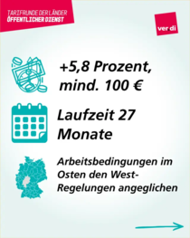 Es sieht ein Lohnplus von insgesamt 5,8 Prozent bei einer Laufzeit von 27 Monaten in drei Erhöhungsschritten vor.
